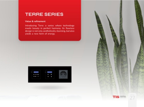 TERRE SERIES Value & refinement Introducing Terre: a series where technology meets beauty in perfect harmony. Its flawless design is not only aesthetically stunning, but also yields a new form of energy. FM 120 Mhz Low 27 c PA G E 27